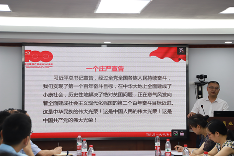 7月1日上午,公司黨委組織干部職工集中觀看慶祝中國共產(chǎn)黨成立100周年大會直播,因工作原因未能及時收看的職工也通過線上回看、學習強國平臺、新聞媒體報道等多渠道觀看。黨委為領導班子和各支部發(fā)放習近平總書記《在慶祝中國共產(chǎn)黨成立100周年大會上的講話》單行本,通過黨委中心組學習(擴大)會、辦公會、支部“主題黨日”等多種方式及時組織黨員認真學習,并交流學習體會。公司黨政領導班子多次參加國藥集團、太極集團黨委組織的學習貫徹習近平總書記“七一”重要講話精神專題視頻會議,持續(xù)抓好習近平總書記重要講話精神學習傳達。