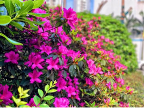 春風(fēng)吹綠江南岸,山山嶺嶺滿杜鵑。漫步在廠區(qū)時(shí),總能看見(jiàn)簇簇新綻的繁花,爭(zhēng)奇斗艷,為滿園春色抹上一筆重彩。