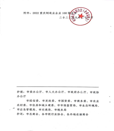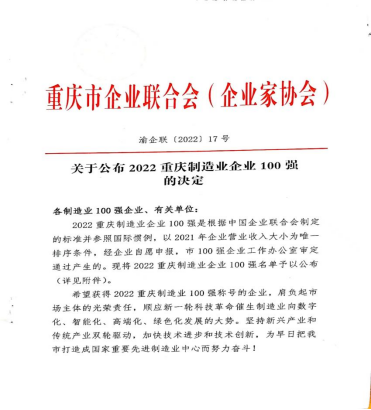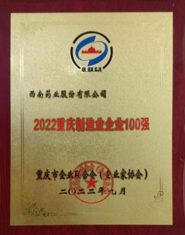 西南藥業(yè)榮獲2022重慶制造業(yè)企業(yè)100強(qiáng)
