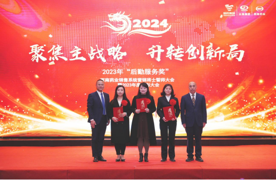 下午2點(diǎn),會(huì)議在激昂的西南藥業(yè)之歌《奮勇向前》中拉開(kāi)序幕。首先,各業(yè)務(wù)條線負(fù)責(zé)人、銷(xiāo)售戰(zhàn)區(qū)總監(jiān)分別對(duì)大會(huì)作了工作匯報(bào)。接著,公司對(duì)2023年度銷(xiāo)售系統(tǒng)先進(jìn)集體及個(gè)人進(jìn)行了表彰,全體營(yíng)銷(xiāo)將士共同見(jiàn)證標(biāo)桿和榜樣的力量。