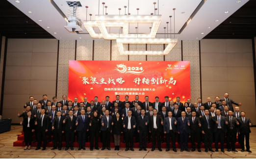 金戈鐵馬聞?wù)鞴?,只?zhēng)朝夕啟新程。近日,西南藥業(yè)銷(xiāo)售系統(tǒng)誓師大會(huì)暨2023年度表彰大會(huì)在重慶召開(kāi)。西南藥業(yè)領(lǐng)導(dǎo)班子、相關(guān)部門(mén)負(fù)責(zé)人、銷(xiāo)售公司及代理銷(xiāo)售事業(yè)部全體營(yíng)銷(xiāo)將士共300余人參加。