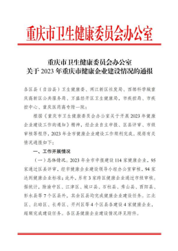 近日,根據(jù)《重慶市衛(wèi)生健康委員會辦公室關(guān)于開展2023年健康企業(yè)建設(shè)工作的通知》精神,經(jīng)市健康企業(yè)建設(shè)領(lǐng)導(dǎo)小組辦公室審核,2023年重慶市健康企業(yè)建設(shè)工作順利完成,西南藥業(yè)成功入選重慶市健康企業(yè)名單。