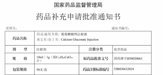 近日,經(jīng)國家藥品監(jiān)督管理局核準(zhǔn),國藥太極西南藥業(yè)成功獲得葡萄糖酸鈣注射液(規(guī)格:10ml:1g)的一致性評價補充申請批件。