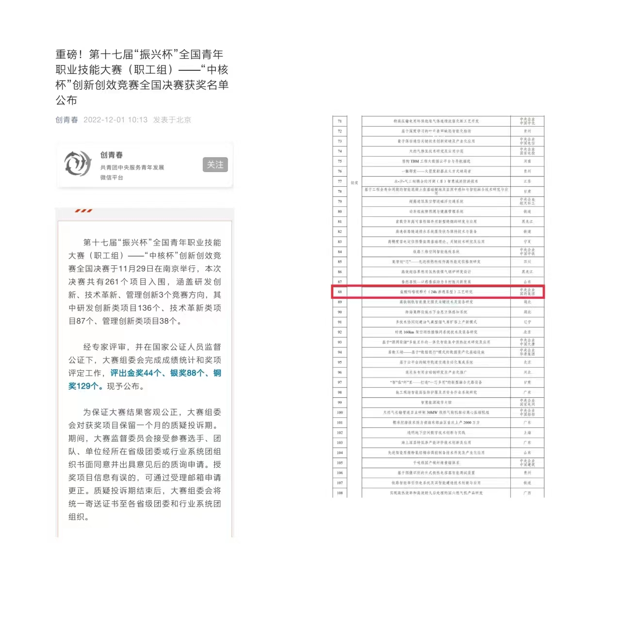 “中核杯”創(chuàng)新創(chuàng)效競賽全國決賽獲獎