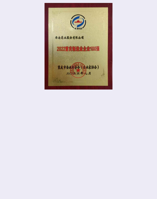 喜報(bào) 西南藥業(yè)榮獲2022重慶制造業(yè)企業(yè)100強(qiáng)