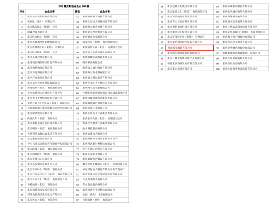 喜報|西南藥業(yè)股份有限公司榮登 2021重慶制造業(yè)企業(yè)100強