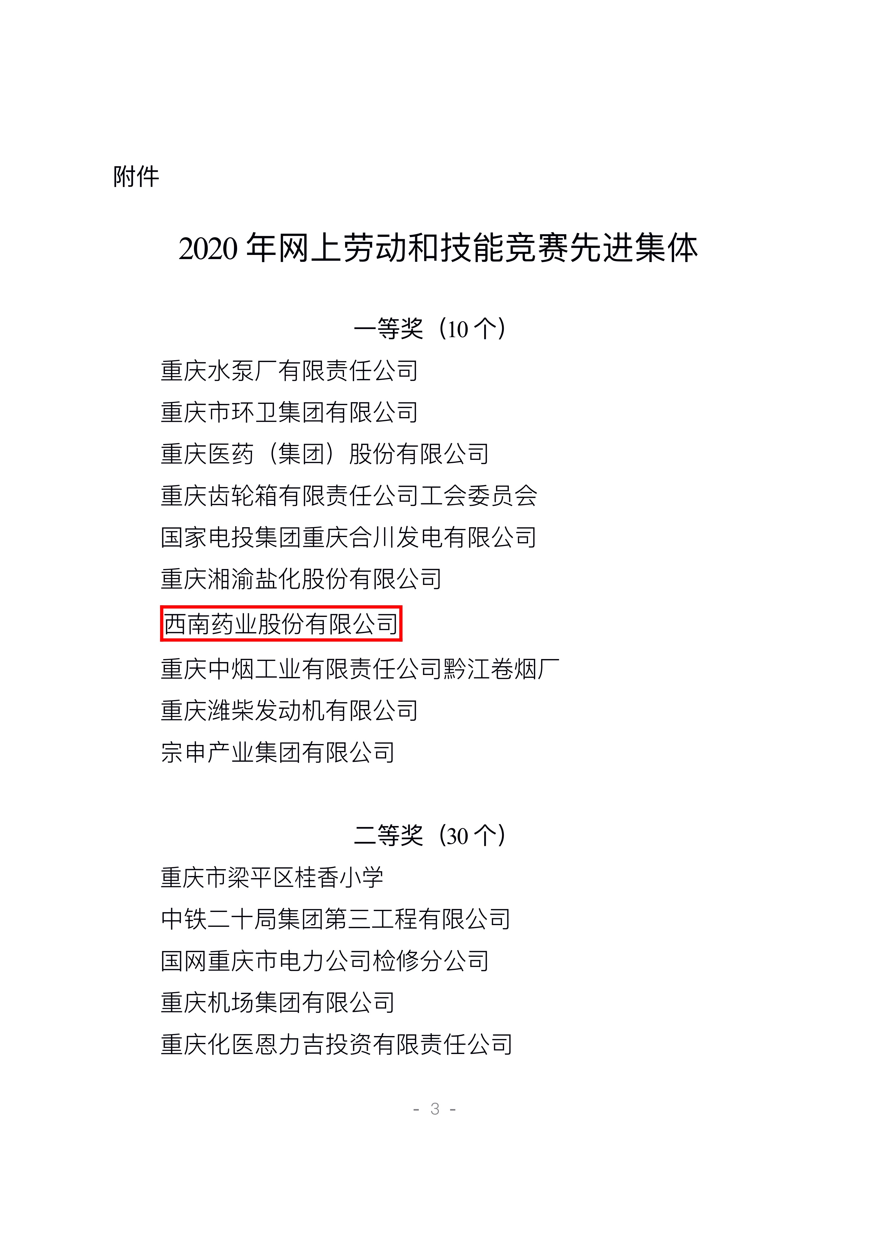喜 報!西南藥業(yè)榮獲重慶市網上勞動和技能競賽先進集體一等獎